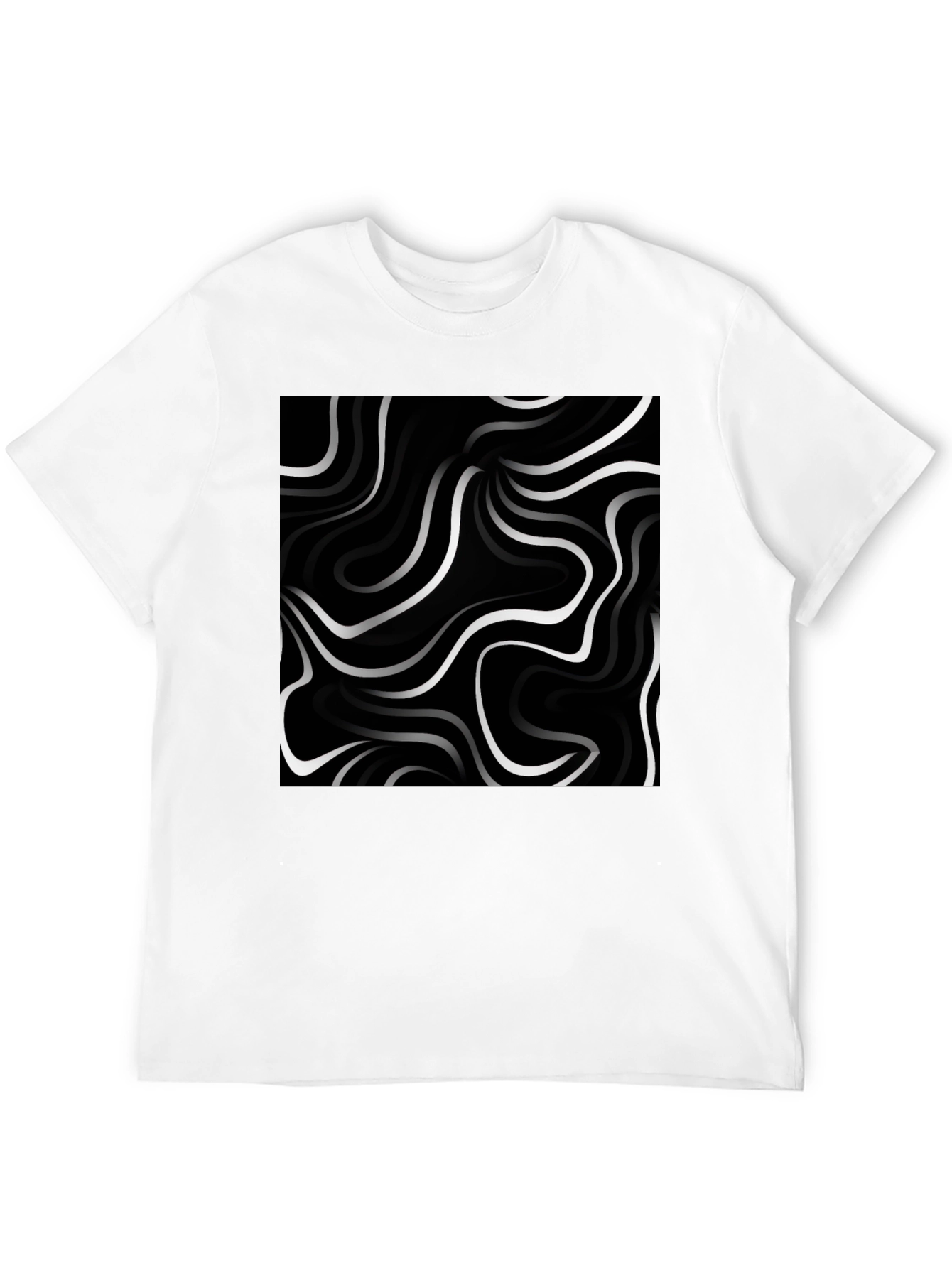 Elevate your casual style with this striking black T-shirt. The shirt features a bold, abstract swirl design in contrasting shades, creating a visually appealing and modern look. Made from comfortable, breathable fabric, this tee is perfect for everyday wear. The eye-catching graphic adds a touch of artistic flair, making it a versatile piece that can be dressed up or down. Pair it with jeans for a relaxed weekend outfit or with chinos for a more polished ensemble. This t-shirt is a great way to express your unique sense of style.