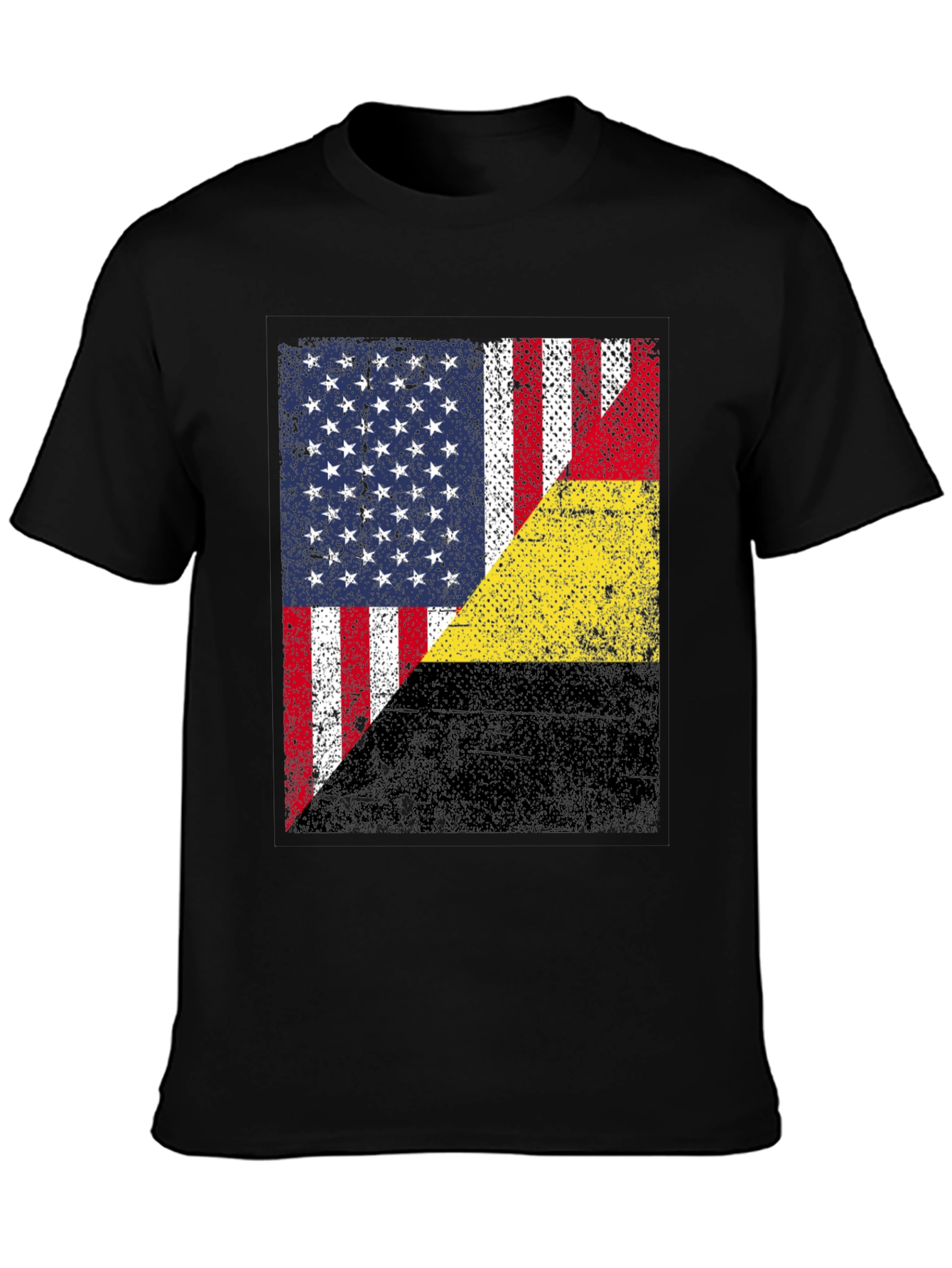 Show your love for two nations with this unique graphic t-shirt. This black tee features a distressed, vintage-style design that combines the American and Belgium flags in a bold, eye-catching way. The design is printed on a comfortable, soft fabric, perfect for everyday wear. Whether you're of American and Belgian heritage, a world traveler, or simply appreciate distinctive designs, this t-shirt is a great way to express your individuality. Pair it with jeans or shorts for a casual, stylish look. Makes a thoughtful gift for friends and family.