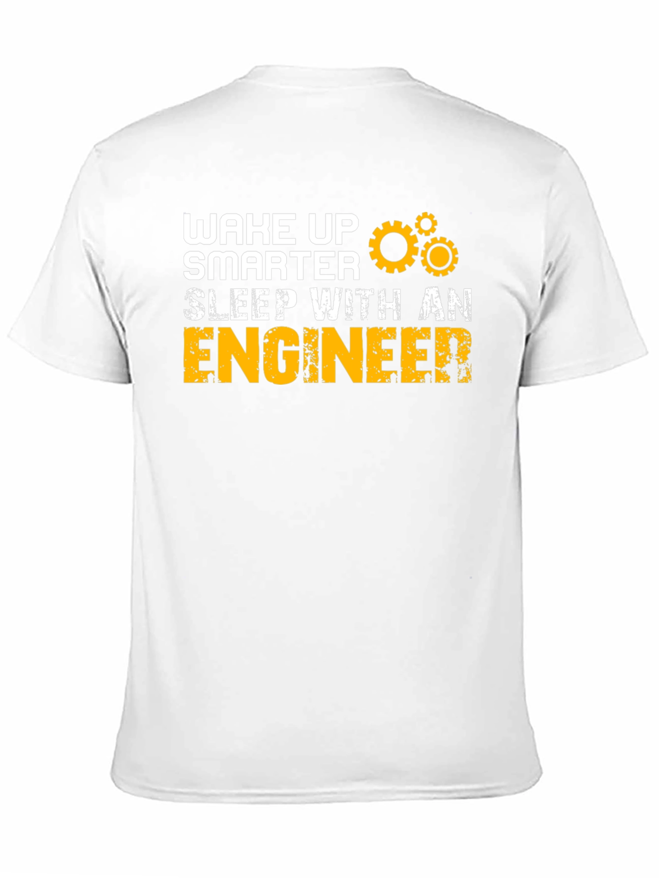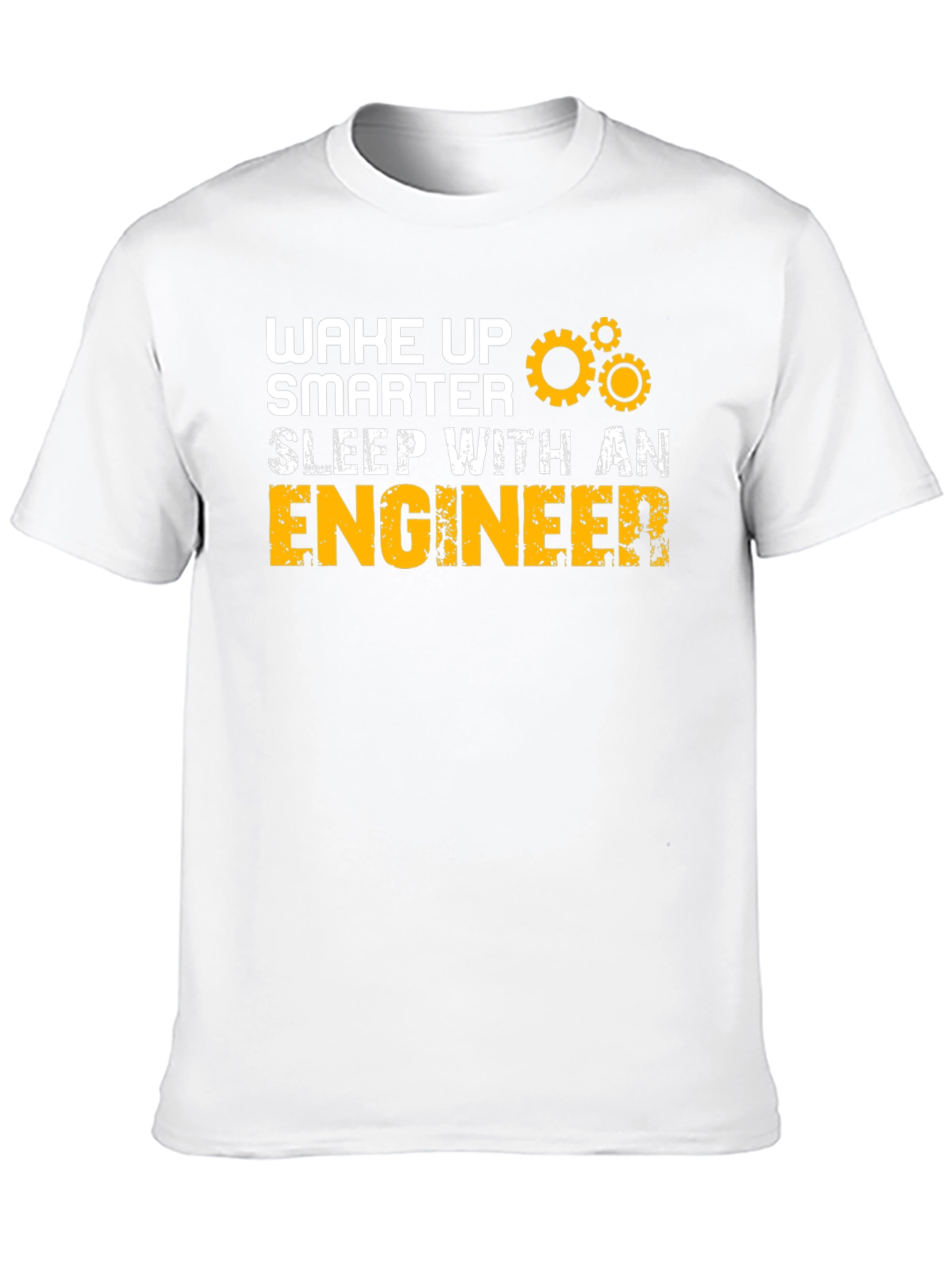 Show off your smarts or appreciation for engineers with this eye-catching black t-shirt. Featuring the humorous slogan "Wake Up Smarter, Sleep With An Engineer" in bold white and yellow text, complete with a gear graphic, this tee is sure to spark conversation. The shirt appears to be made from a soft, comfortable material, perfect for everyday wear. Ideal for engineers themselves, their partners, or anyone who appreciates a clever and witty statement piece. Wear it casually, or as a fun statement at work or social gatherings. Get yours today and let the world know you value intelligence!