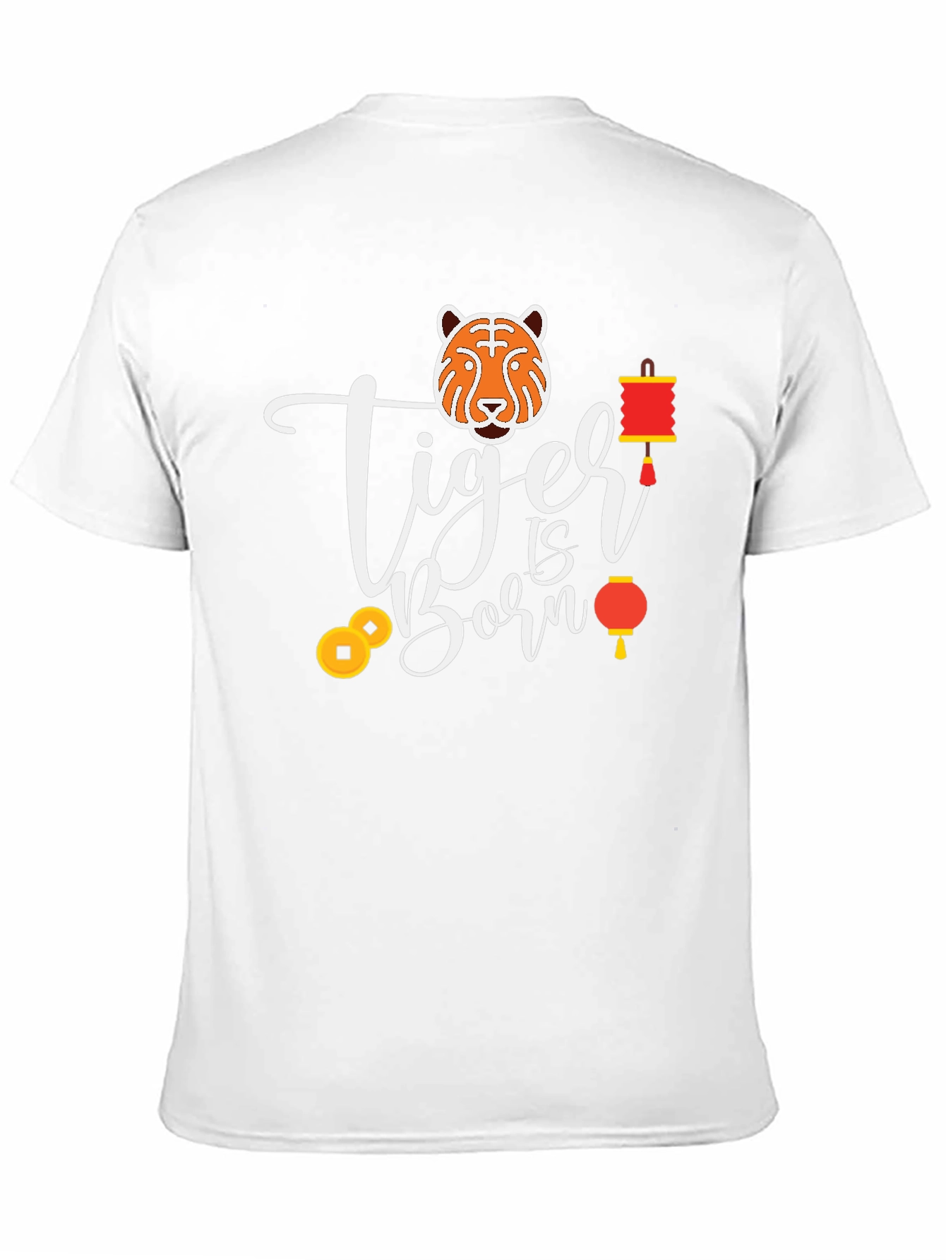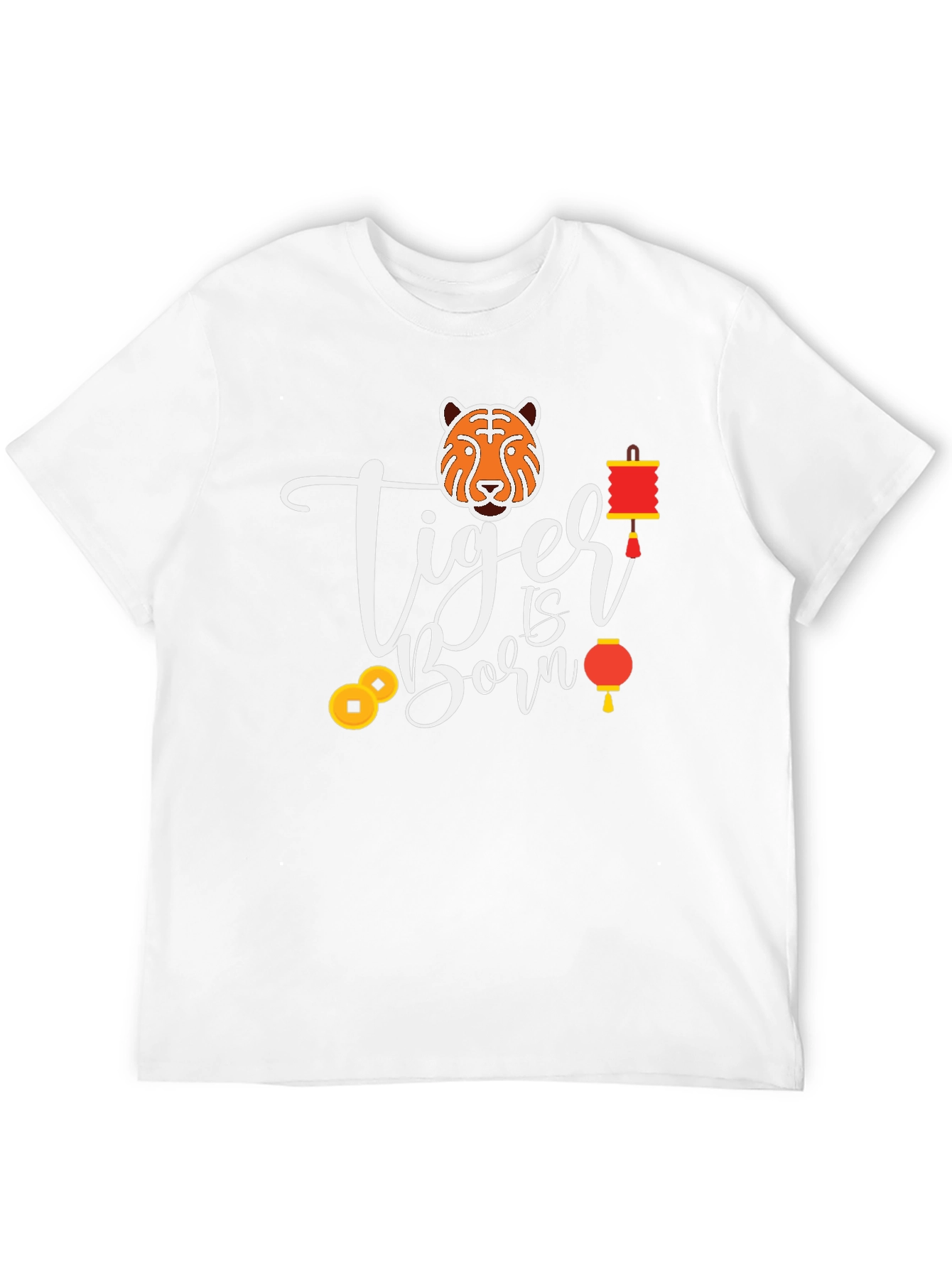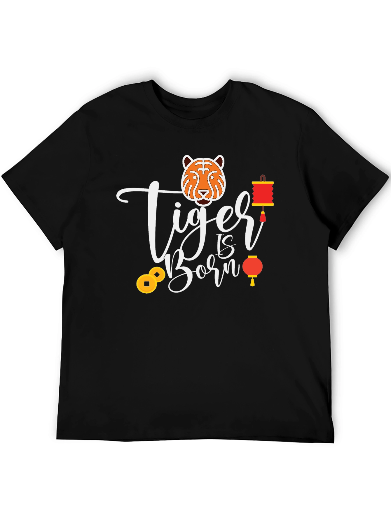 Celebrate the Year of the Tiger with this unique t-shirt. The shirt features a bold "Tiger is Born" graphic, complete with a stylized tiger face and traditional Chinese lanterns. Perfect for Lunar New Year celebrations or anyone born in the Year of the Tiger, this shirt will make a statement. Its classic design ensures versatility, making it suitable for casual wear or special occasions. Show off your zodiac pride in style with this eye-catching and comfortable tee.