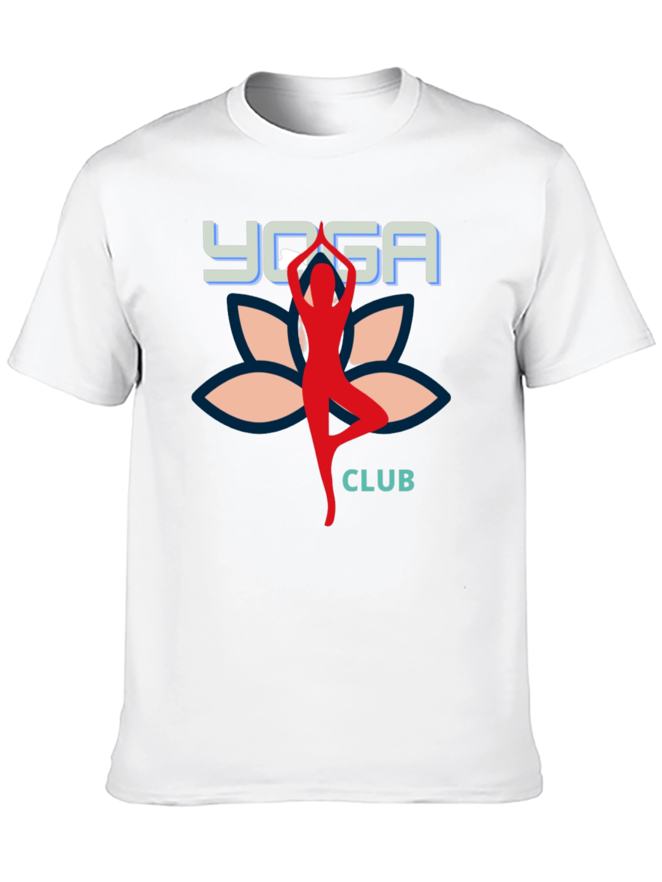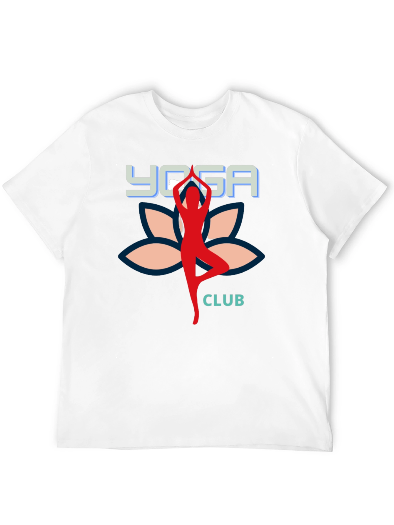 Elevate your style with this eye-catching black t-shirt featuring a unique yoga-inspired design. The shirt showcases a stylized silhouette of a yoga pose over a lotus flower backdrop, accompanied by the words 'YOGA CLUB'. Made from a soft-looking fabric, this tee offers both comfort and style for everyday wear. Perfect for yoga enthusiasts or anyone who appreciates mindful fashion, this t-shirt is ideal for casual outings, gym sessions, or simply lounging at home. Make a statement and express your passion for yoga with this trendy and comfortable shirt.
