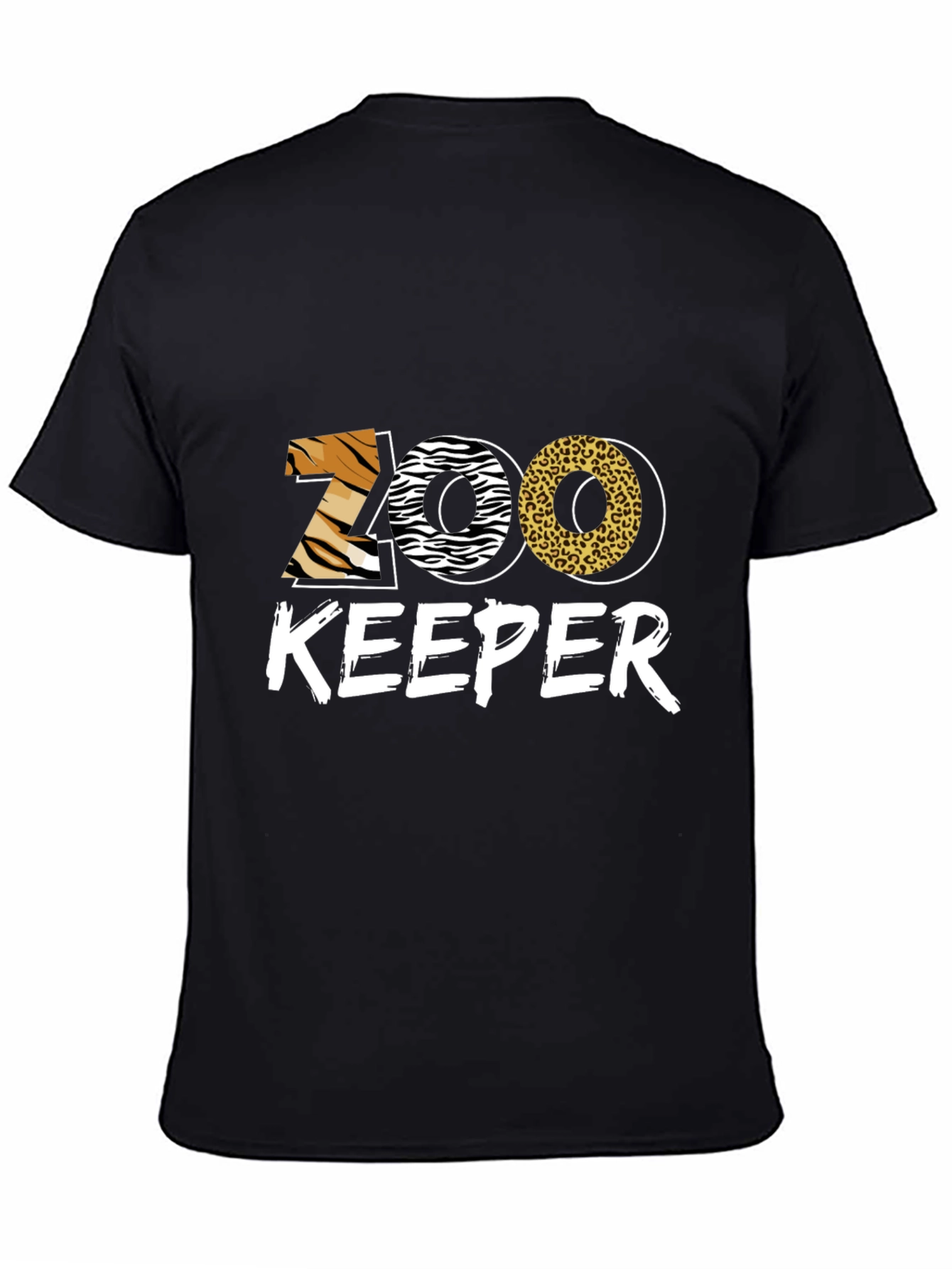 Show off your passion for wildlife with this eye-catching Zoo Keeper T-shirt. Featuring a bold graphic of "ZOO" filled with distinctive animal prints—tiger stripes, zebra stripes, and leopard spots—this shirt is sure to turn heads. The word "KEEPER" is displayed below in a clean, block letter style. Made from what appears to be a soft and breathable fabric, it offers all-day comfort. Its classic fit makes it versatile for casual outings, zoo visits, or simply expressing your love for animals. This statement tee is a must-have for animal enthusiasts, zoo employees, and anyone who wants to add a touch of wild style to their wardrobe.